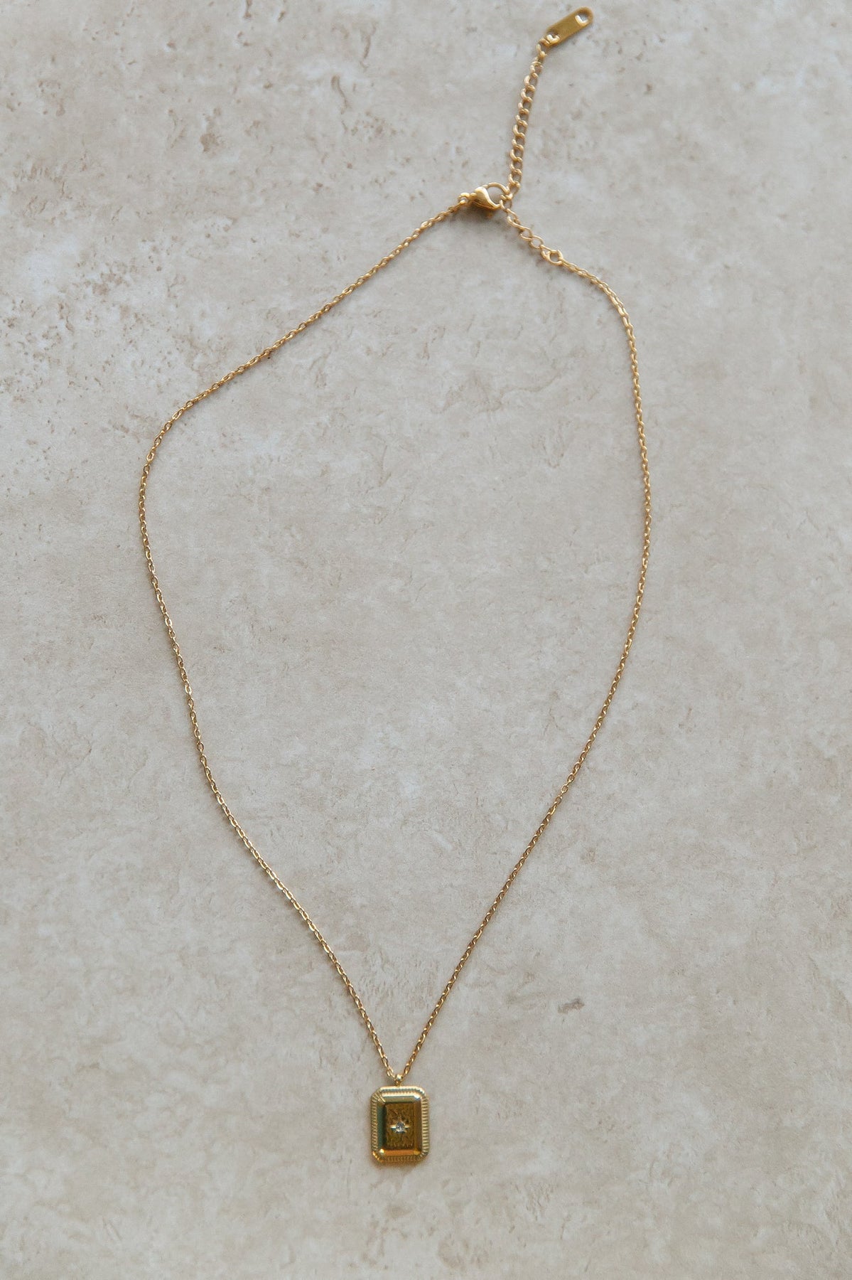 Take in all of the most beautiful Starry Sights with this piece by your side. This lovely necklace features an elegant thin chain. that's completed with a rectangular-shaped pendant.