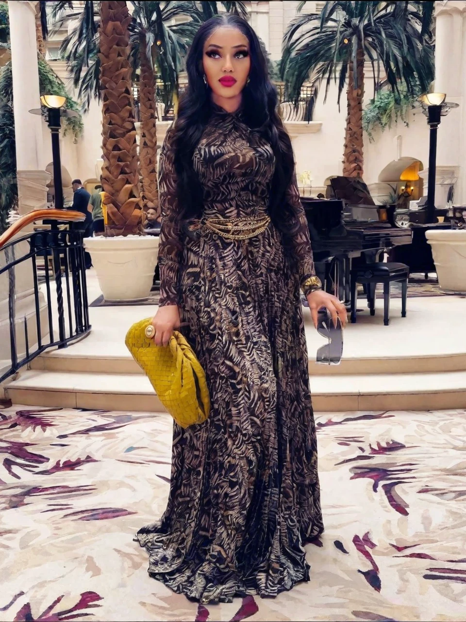 This brown sheer mesh slim-fit maxi dress features an elegant high-neck design. The sheer mesh fabric brings a hazy and high-end sense, and the slim fit hugs the body, showcasing feminine softness and aura with every step. Suitable for dinners, high-end parties, and fashion socials, pair it with a metal waist chain and exquisite handbag to easily be the focal point, get it now.