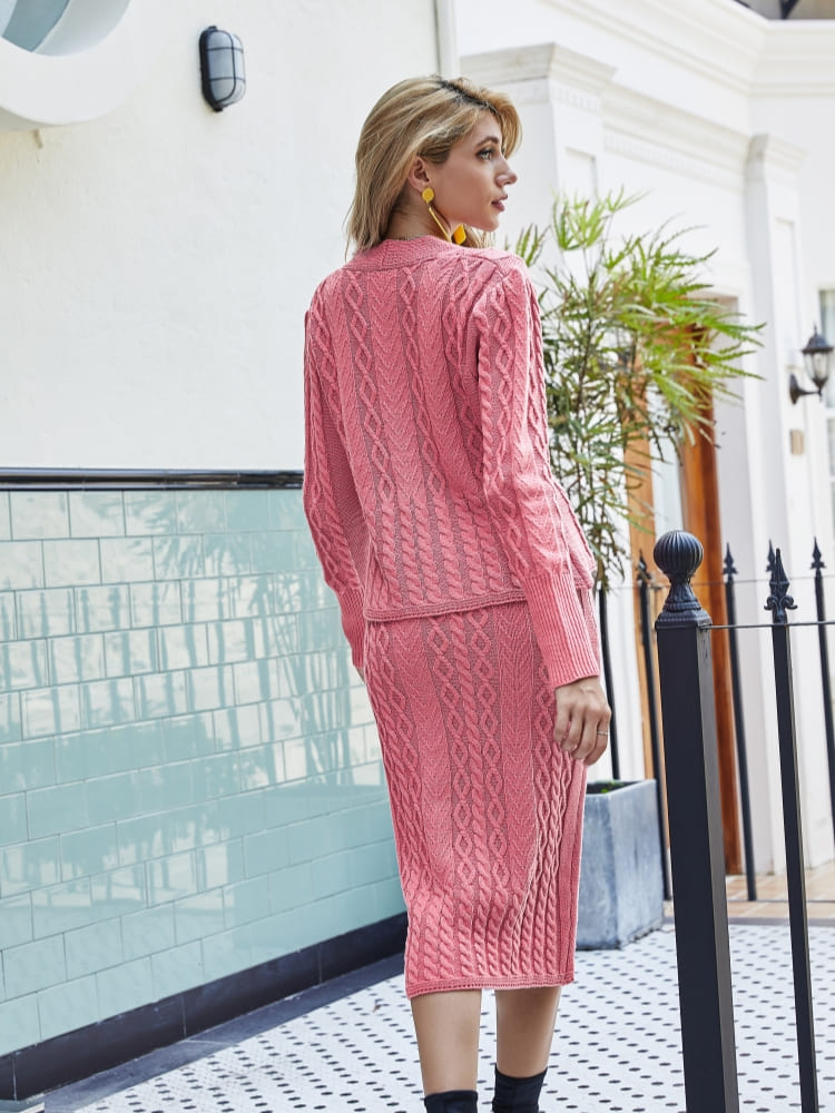 Casual Knit V-Neck Sweater & Bodycon Skirt Set – Stella Empire