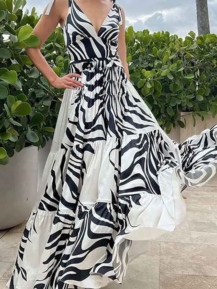This new hot-selling swimsuit brings sophisticated contrast to the beach scene with its deep V neckline and classic black-and-white striped print. Crafted with premium materials, the design enhances the natural silhouette while offering comfortable support. The clean lines and modern cut lend a high-fashion vibe that makes this swimsuit not just functional, but a true style statement. Whether you're lounging by the pool or strolling a coastal resort, this look exudes confident elegance.