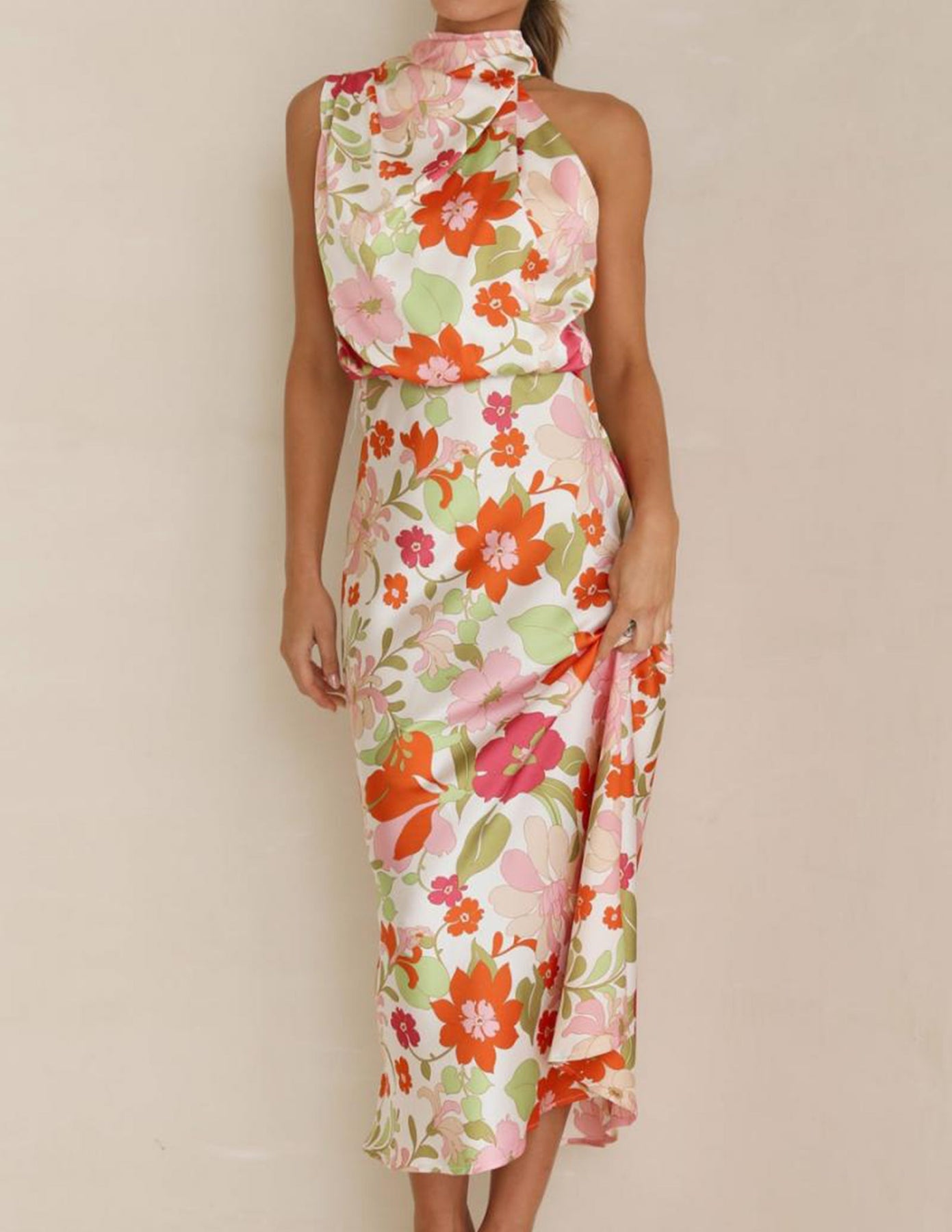 Floral Halter Neck Elastic Waist Maxi Dress – Stella Empire