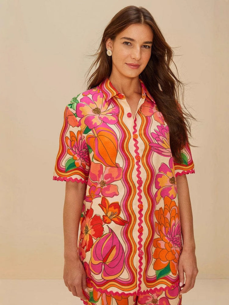 This stylish printed shorts set features a classic 3/4 sleeve top and matching shorts, perfect for summer adventures. The lightweight fabric keeps you cool and comfortable, while the playful print adds a touch of fun to your wardrobe. Ideal for beach days, casual outings, or vacation wear, this set offers both style and ease.