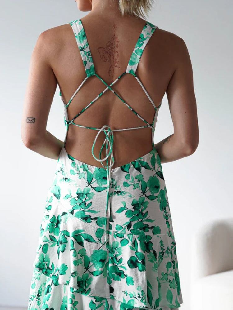 This beautiful floral print dress features a flattering V-neckline and delicate adjustable straps for a perfect fit. The high-waist design elongates your silhouette, while the lightweight fabric and ruffle hem add movement and romance. Perfect for garden parties, summer weddings, or vacation wear, this dress combines feminine charm with effortless style.