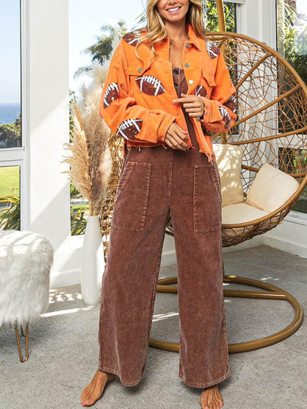 The jacket features a comfortable fit, ensuring both style and ease of movement. Its versatility makes it suitable for a range of occasions, from casual gatherings to more sophisticated events. With the Game Day Rugby Sequined Single-Breasted Jacket, you'll effortlessly make a fashion statement that's uniquely you.