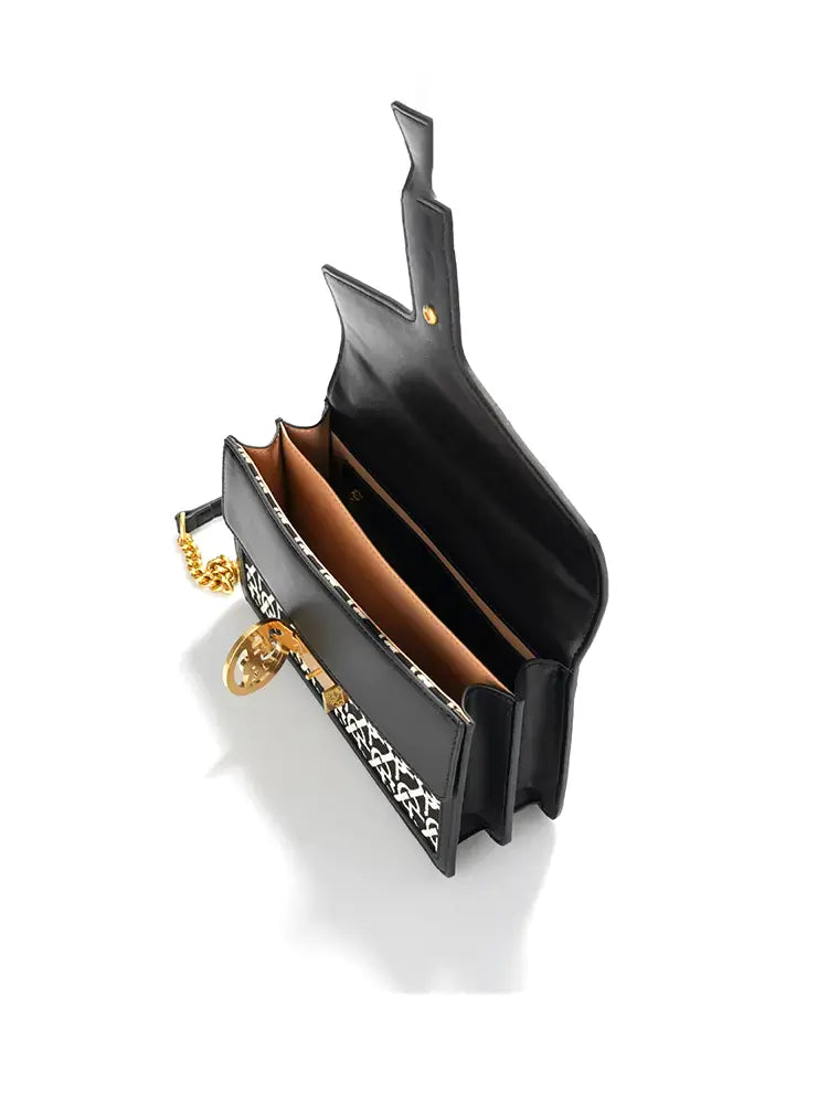 This black jacquard backpack crossbody bag features refined stitch embroidery over a rich woven texture, blending utility with understated elegance. Its convertible design allows it to be worn as both a backpack and a crossbody, offering flexible styling for the modern lifestyle. Compact yet spacious, it’s crafted for women who want practical functionality with a sophisticated edge in an all-black palette.