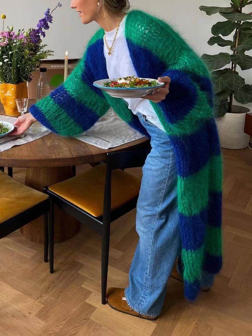 Lazy Style Contrast Striped Sweater Long Coat – Stella Empire