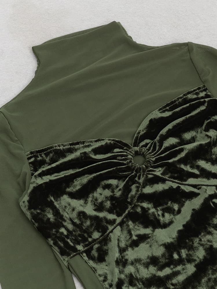 Embrace luxurious elegance in this long sleeve velvet mesh dress. The rich velvet fabric offers a soft, sophisticated texture, while the sheer mesh panels add a modern twist, creating a beautiful contrast. With its figure-flattering fit and elegant long sleeves, this dress is perfect for formal events, evening galas, or cocktail parties.