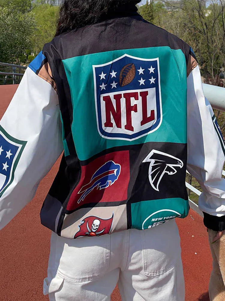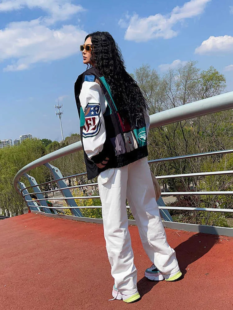 Crafted with a keen eye for detail and a focus on fashion-forward design, this jacket effortlessly combines bold color blocking with a loose, relaxed fit. The result? A versatile piece that adds a touch of drama to your look while keeping you comfortably covered.
