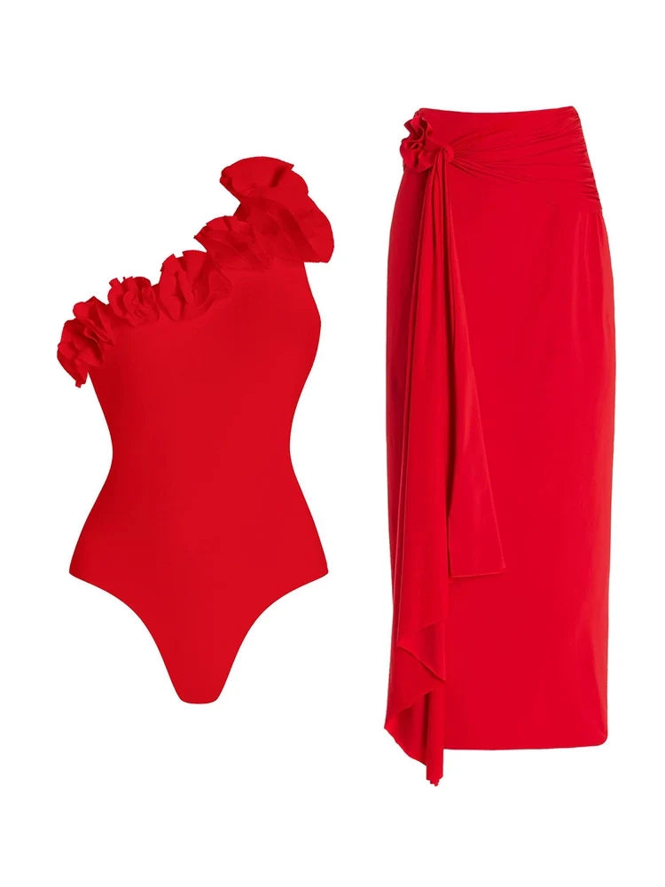 Turn heads this summer with this elegant one-shoulder one-piece swimsuit, featuring exquisite 3D floral embellishments. Designed with a romantic honeymoon vibe, this piece blends high fashion with beach-ready charm for the modern vacationer.