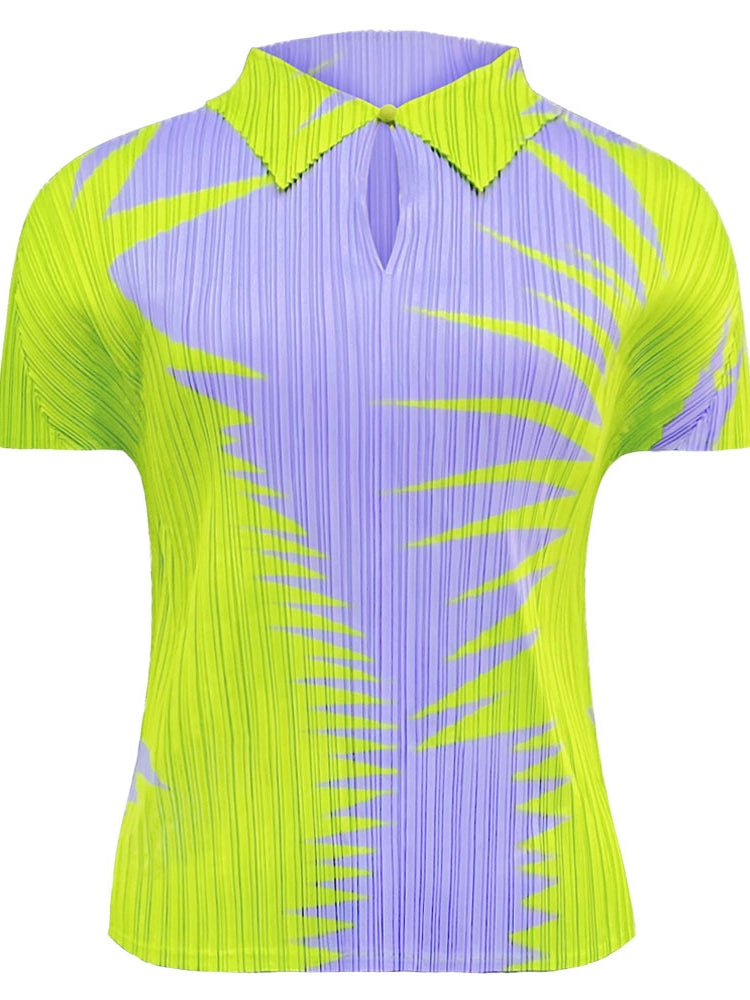"This set features a stylish short-sleeved top with an elegant lapel design, offering a modern twist on classic tailoring. Paired with a matching skirt adorned with delicate pleats, this ensemble exudes effortless charm and versatility."
