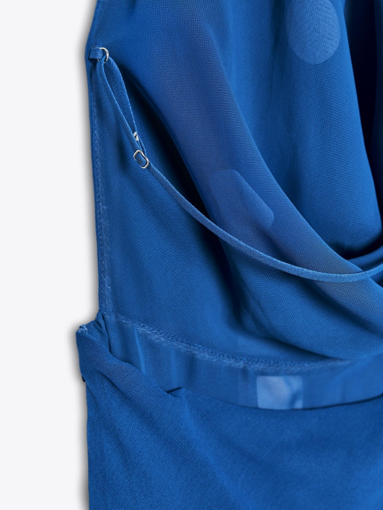 Polka Dot Draped Halter Midi Dress