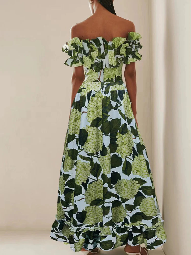 This fresh and feminine bikini set features a romantic hydrangea print and a ruffled bandeau top, combining sweet floral vibes with a playful silhouette. Designed to enhance your natural curves while offering a comfortable fit, it's the perfect choice for embracing sunshine in style.