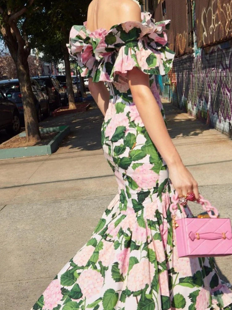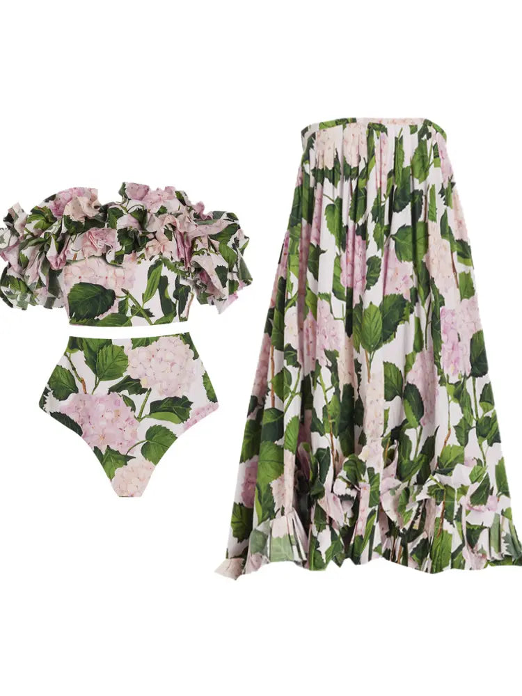 Step into summer with elegance in this Ruffled Hydrangea Strapless Bikini Set. Featuring a fresh floral print and playful design, this two-piece swimsuit perfectly blends charm and comfort for a standout beach look.