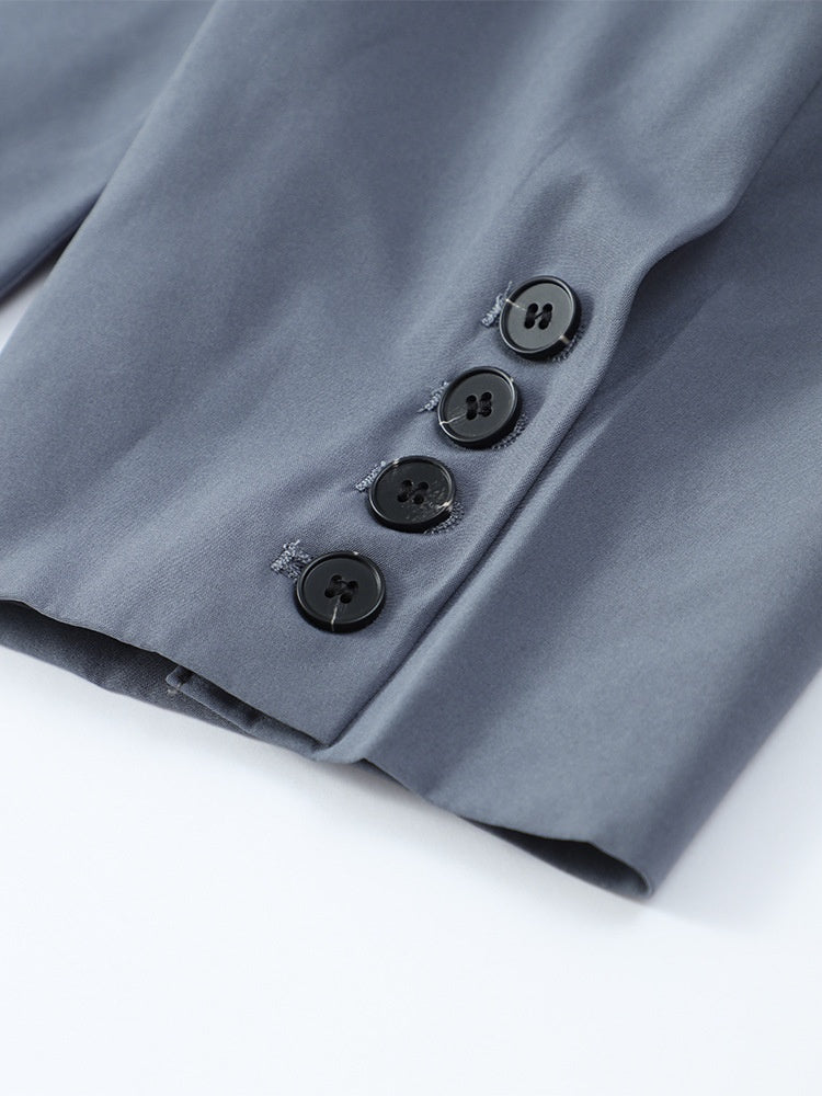 Elevate your wardrobe with this unique side-slit blazer, blending classic tailoring with a modern twist. The side slits add a subtle yet stylish flair, enhancing movement and creating a relaxed silhouette that still looks polished. Perfect for both workwear and evening outings, this blazer adds a distinctive edge to any outfit, making it a versatile staple for the fashion-forward.
