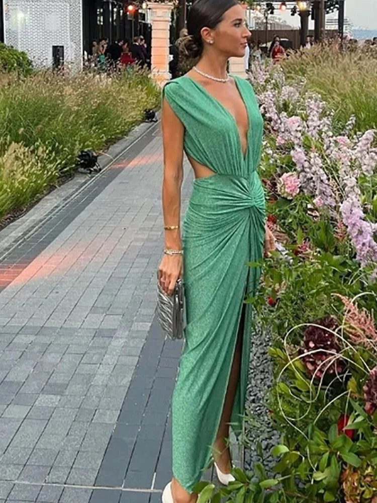 This deep V one-piece swimsuit set, crafted from shimmering fabric, brings a glamorous, sensual vibe to your swimwear collection. The plunging neckline adds allure while the sparkling material catches the light, creating a dazzling effect in the sun. Designed for those who want to make a statement, the swimsuit offers both structure and flexibility, hugging the body in all the right places for a flattering and comfortable fit. Perfect for turning heads at the pool or beach, this set exudes luxury and confidence.