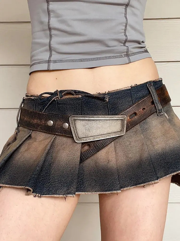 This street-style vintage-inspired skirt features a bold, tie-dye design with a unique wash effect, giving it an edgy, worn-in look. The high-waisted cut enhances the figure, while the asymmetrical pleating adds a playful and dynamic touch. With a daring super-short length and adjustable side tie, this skirt exudes a confident, seductive vibe perfect for bold fashion lovers.