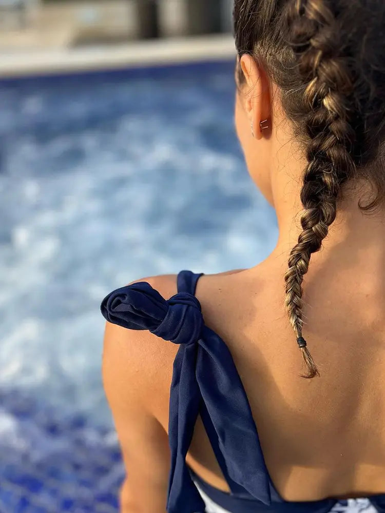 This stylish one-piece swimsuit features bold contrast prints and delicate tie straps that add both function and a touch of playful femininity. The fitted silhouette flatters the figure, while the color-blocked floral design delivers a fresh, modern twist to classic swimwear. With its balance of trend-forward style and comfort, this piece effortlessly stands out at any beach or poolside setting.